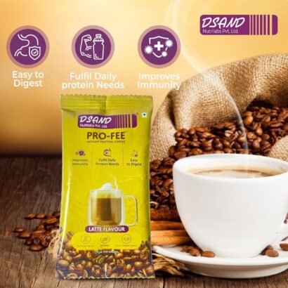DSAND Pro-Fee Instant Protein Coffee | Improves Immunity | Easy To Digest | Latte Flavor Whey Protein Pouch For Travel | No Sugar Or No Preservatives – Pack Of 10 (12 Gm Each)